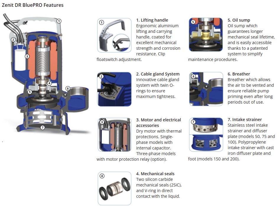 ZEN-DRBLUEP150/2/G50VMEX – Pump Submersible IECEX Slightly Dirty Water Industrial 600L/M 14